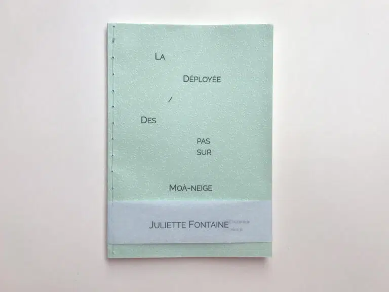 Recueil de Juliette Fontaine, artiste plasticienne, curatrice et autrice, publié aux éditions atmen : 56 pages, format 10 x 15 cm. Ouvrage non massicoté & non paginé. Chaque exemplaire est numéroté, façonné & relié main.