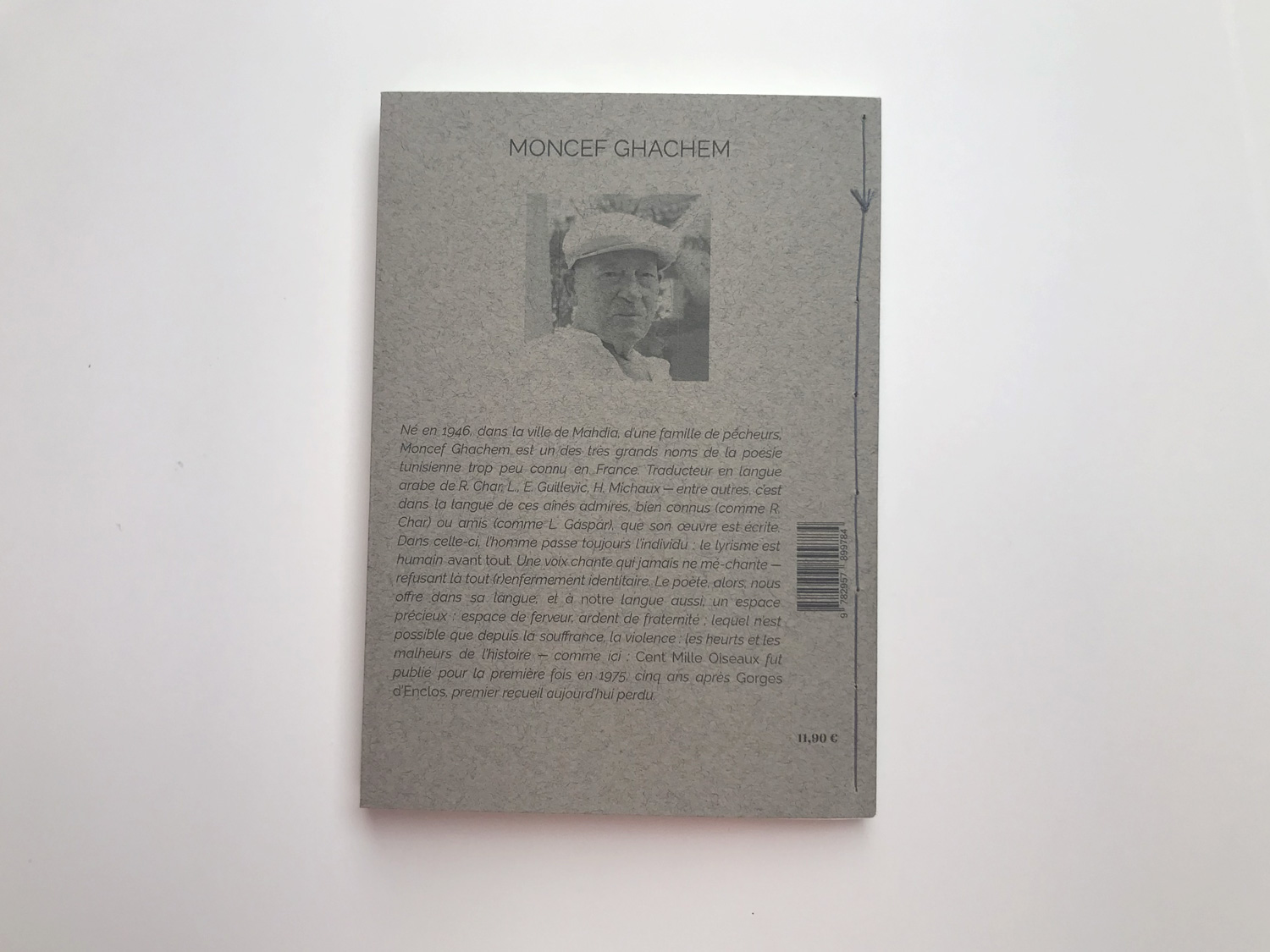 Né en 1946, dans la ville de Mahdia, d’une famille de pêcheurs, Moncef Ghachem est un des très grands noms de la poésie tunisienne trop peu connu en France. Traducteur en langue arabe de R. Char, L., E. Guillevic, H. Michaux ─ entre autres, c’est dans la langue de ces aînés admirés, bien connus (comme R. Char) ou amis (comme L. Gáspár), que son œuvre est écrite. Dans celle-ci, l’homme passe toujours l’individu : le lyrisme est humain avant tout. Une voix chante qui jamais ne mé-chante ─ refusant là tout (r)enfermement identitaire. Le poète, alors, nous offre dans sa langue, et à notre langue aussi, un espace précieux : espace de ferveur, ardent de fraternité ; lequel n’est possible que depuis la souffrance, la violence : les heurts et les malheurs de l’histoire ─ comme ici : Cent Mille Oiseaux fut publié pour la première fois en 1975, cinq ans après Gorges d’Enclos, premier recueil aujourd’hui perdu.
