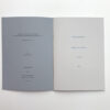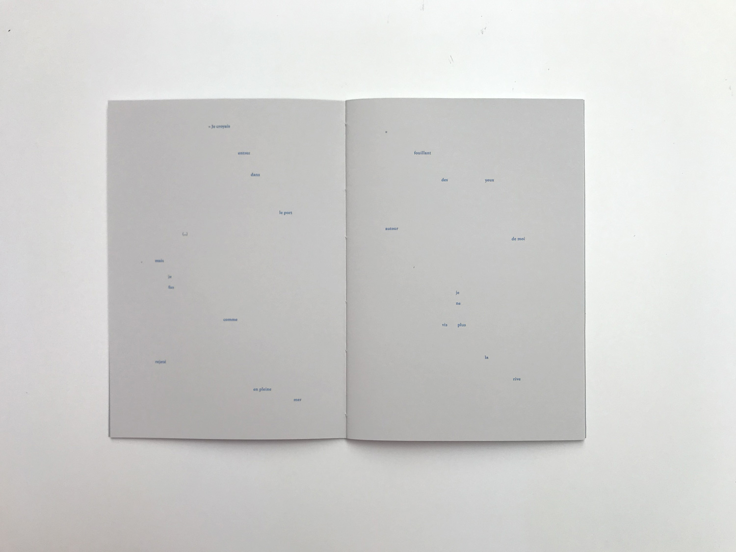 Composé en Raleway, Rozha One (noir) et Lora semi-gras (bleu de minuit). Intérieur non paginé. Tirage à 50 ex, tous numérotés à la main ; pliage, massicotage et reliure (fil ocre jaune) faits main également.
