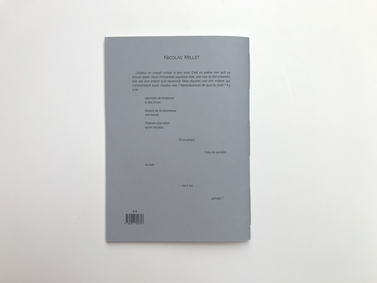 Auteur, éditeur et professeur de philosophie, Nicolas Millet dirige les éditions atmen. Il a aussi publié aux éditions Harpo& un livre : “reprendre, haleine”. Tout en travaillant à éditer des ouvrages où le poème trouverait place singulière, il continue, persiste à enseigner la philosophie et à traduire Emily Dickinson, Gérard Manley Hopkins ou Charles Reznikoff.