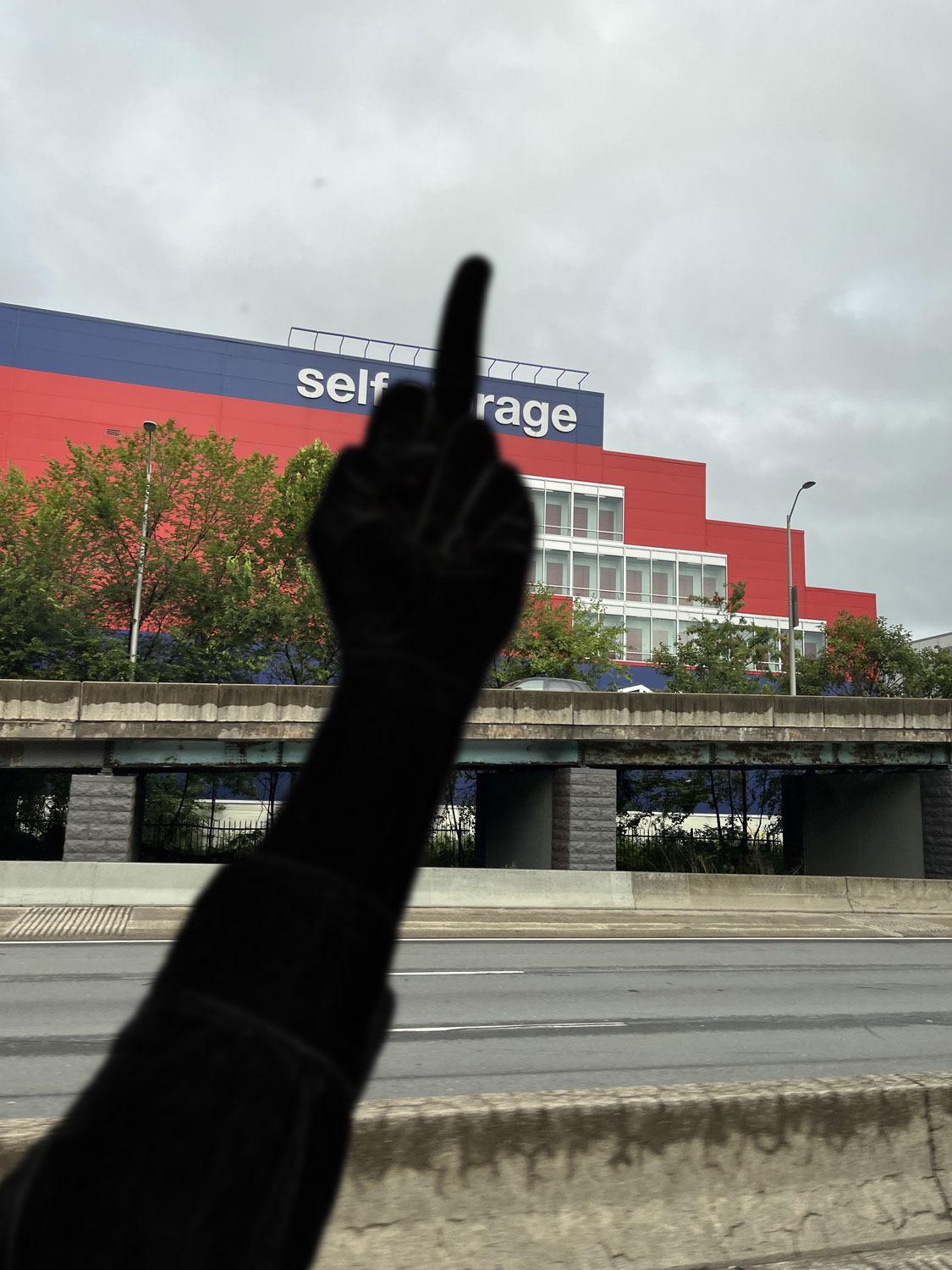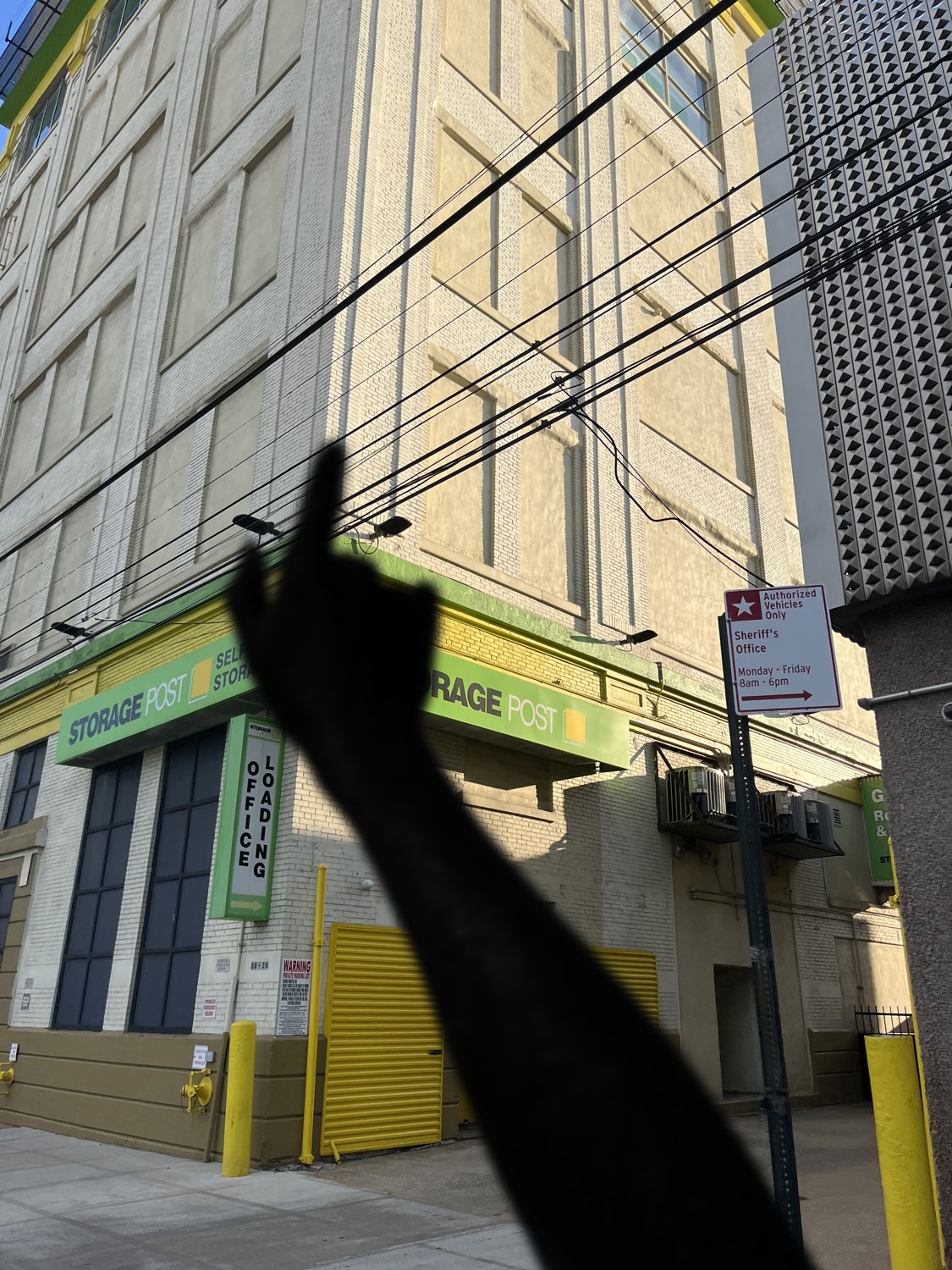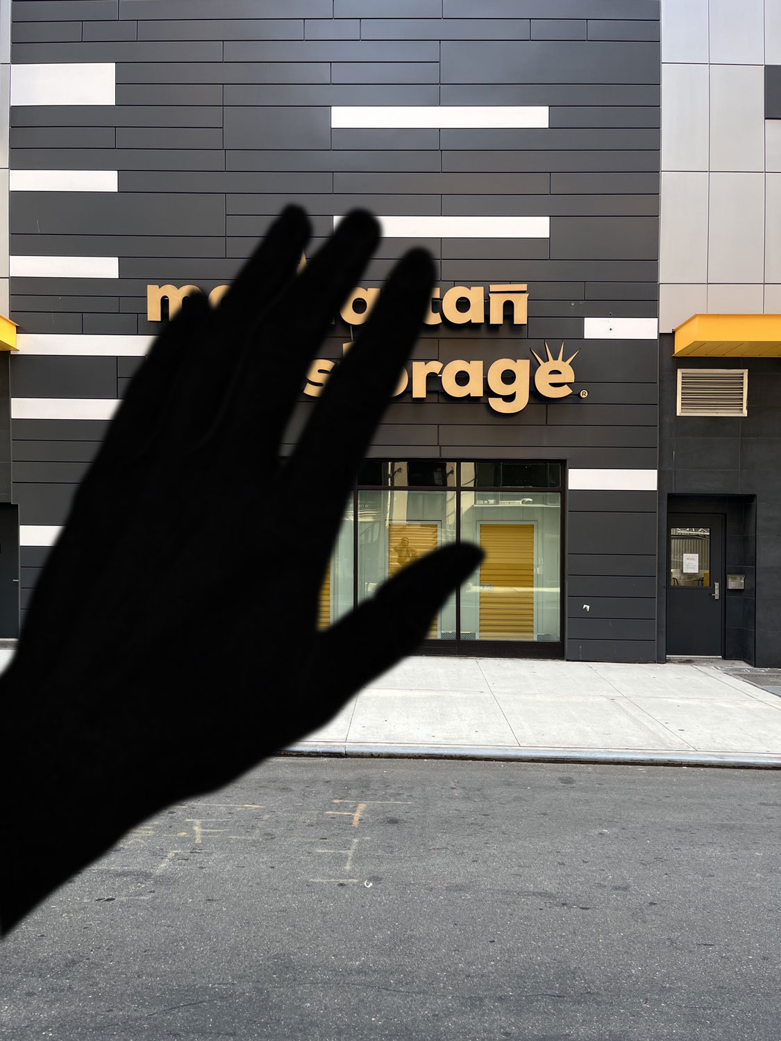 Main Rage est une série de photographies prises en septembre 2025 aux USA par l’artiste, lors de sa résidence à New York dans le cadre du prix Edward Steichen Award dont elle est lauréate. Ces images montrent toutes des facades d’entrepôts de stockage, devant lesquels l’ombre d’une main vient chaque fois cacher les lettres « STO » du mot storage et laisser apparaître ainsi les mots self rage, rage plus, etc. Le geste est parfois anodin, parfois signifiant, effectué dans l’instant de la prise de vue ou ajouté a posteriori. La violence du contexte contemporain est désignée comme par un tag invisible et furtif, qui ne laisse aucune trace et n’est visible que dans l’image.